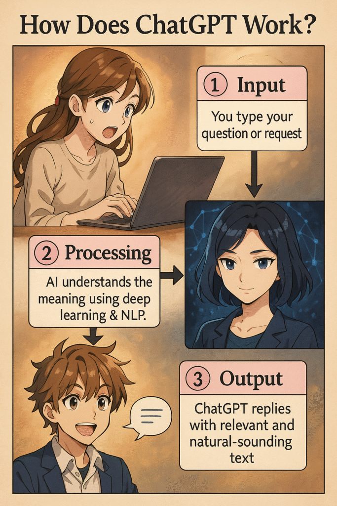 ChatGPT is an advanced AI chatbot developed by OpenAI, designed to simulate human-like conversations and help users with writing, learning, coding, and problem-solving. It uses Artificial Intelligence (AI) and Natural Language Processing (NLP) to understand your queries and generate accurate, context-aware responses.